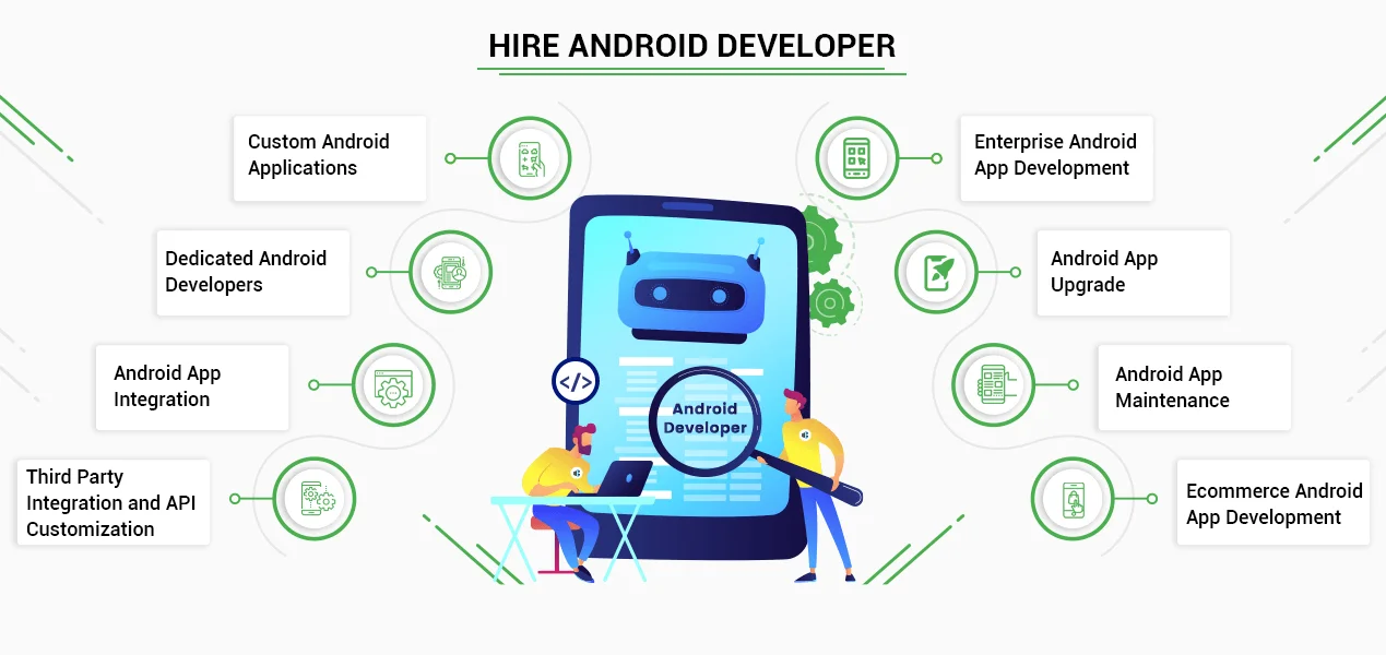 Hire Android Developer for all your mobile application development. Our wide experienced Android developers create well-customized and feature-rich mobile applications on the basis of your business requirements. Our Android Developers are experts in all the primary Android versions for example marshmallow, nougat, oreo, Android Pie, Android 10 and Android 11.