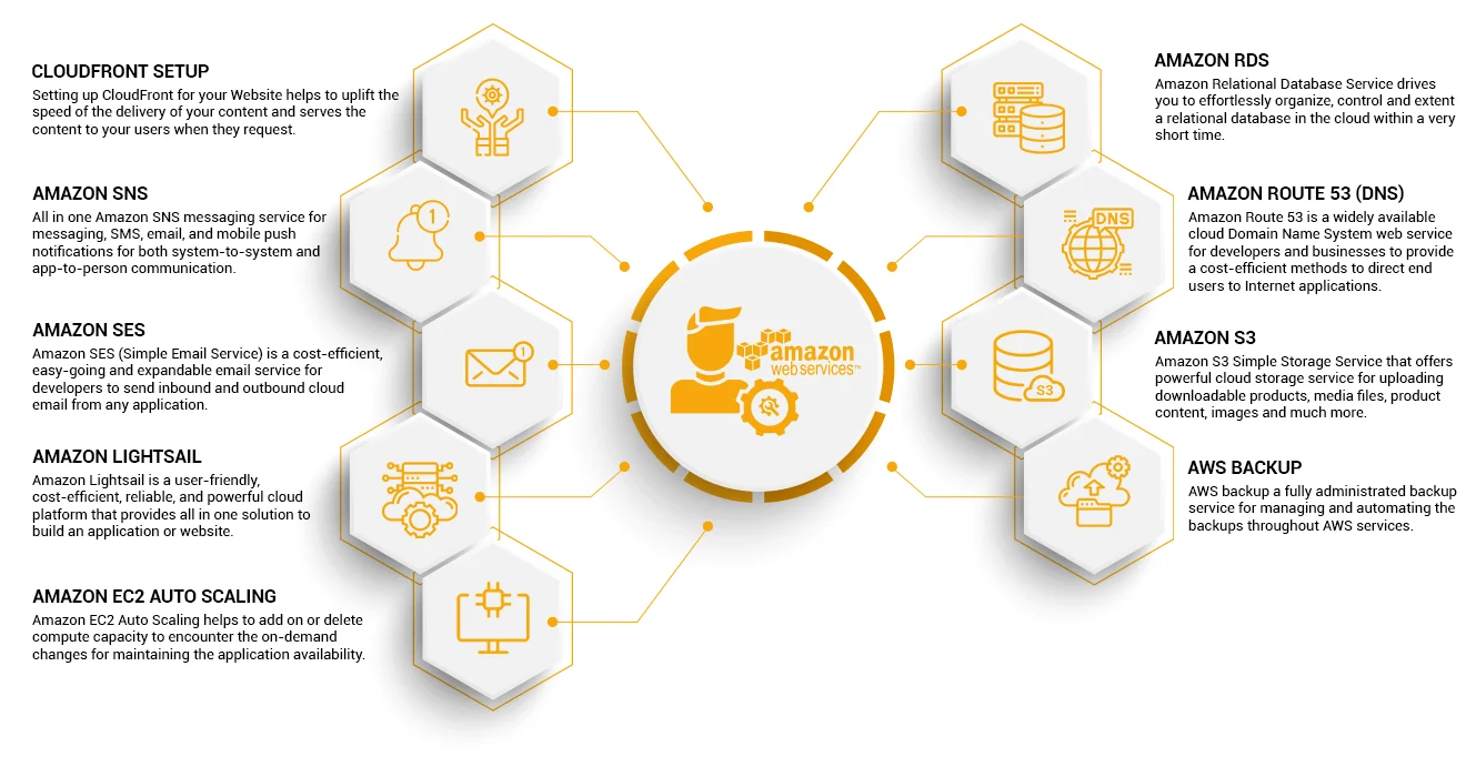 Looking for one of the most used and popular cloud computing services? AWS will be the best suggestion from our side. We help in smoothening your cloud adaption process for your E-commerce store. At, MageComp we provide extensive on-demand AWS cloud solutions for your complicated business needs. It includes Cloudfront Setup, Amazon SNS (Amazon Simple Notification Service), Amazon SES (Simple Email Service), Amazon Lightsail, Amazon EC2 Auto Scaling, Amazon RDS (Relational Database Service), Amazon Route 53 (DNS), Amazon S3 (Simple Storage Service) and AWS backup which will provide a better workforce and strength to your business.