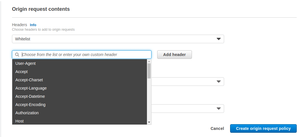 Choose to Accept, Host, and Origin values for Whitelist Headers from Cache Based on Selected Request Headers