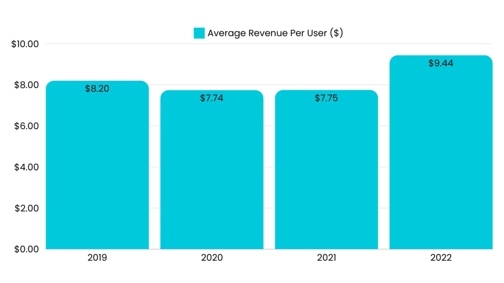 • The year 2022 was game-changing for Bing as the average revenue per user increased by $9.66.