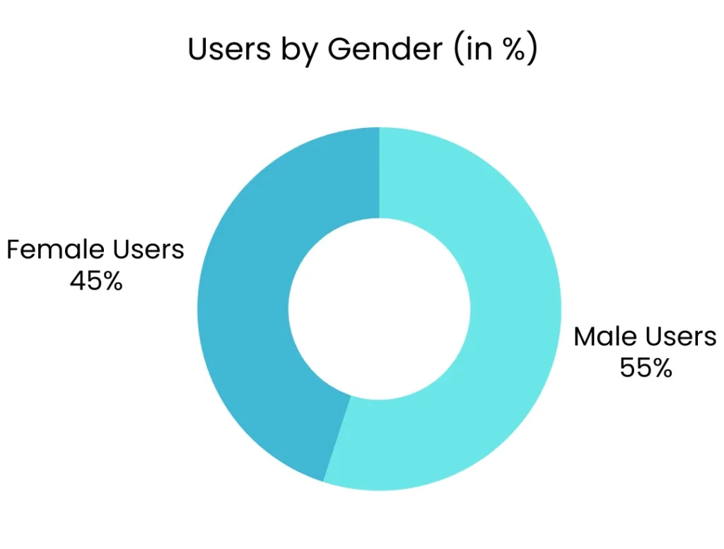 • Among these users, male users hold the highest base of 55% and female users hold 45%.