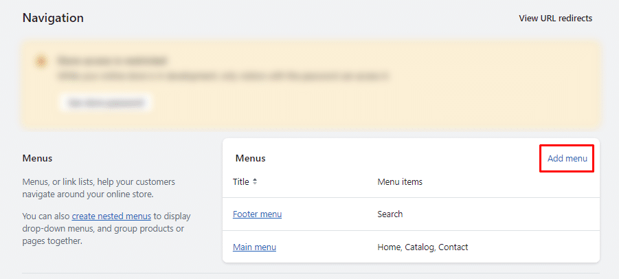 - From the left-hand menu, go to “Online Store” and select “Navigation.”