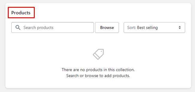 Step 4: Now, you will find a new section – Products added to the collection details page. Browse and search for products to add products to the collection in Shopify. You can also set the sorting order of the products that will be displayed within the collection.
