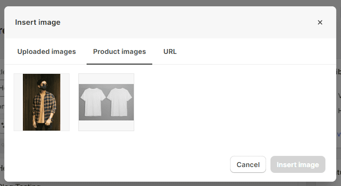 Note – You can choose from your uploaded images, product images, or even paste the URL of the image.