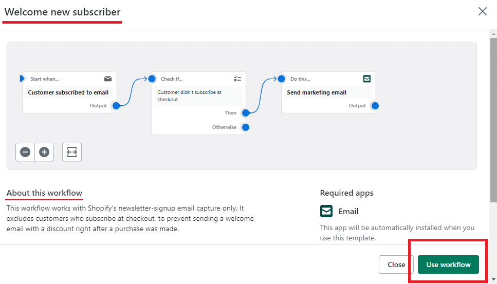 If the automation is suitable for you, select the Use workflow option.