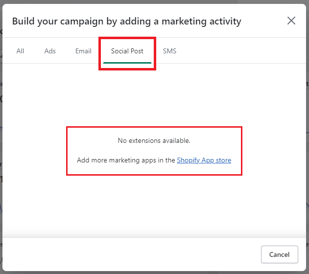 If you do not have any plugins installed on your Shopify store and choose a marketing activity, then it will give you a popup like this.