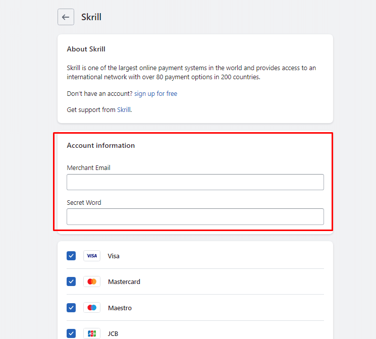 Once activated, the payment provider will be listed in the Shopify Payment Methods section, and customers will be able to use it to make payments in your store.