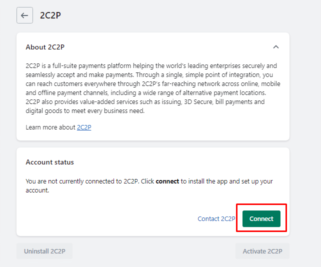 Step 8: If the payment provider is not connected with your Shopify store, you will be asked to Connect the payment provider with your Shopify store.