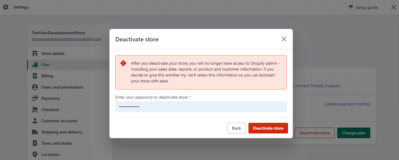 Step 5: Enter credentials and click on Deactivate Store to permanently close your store.