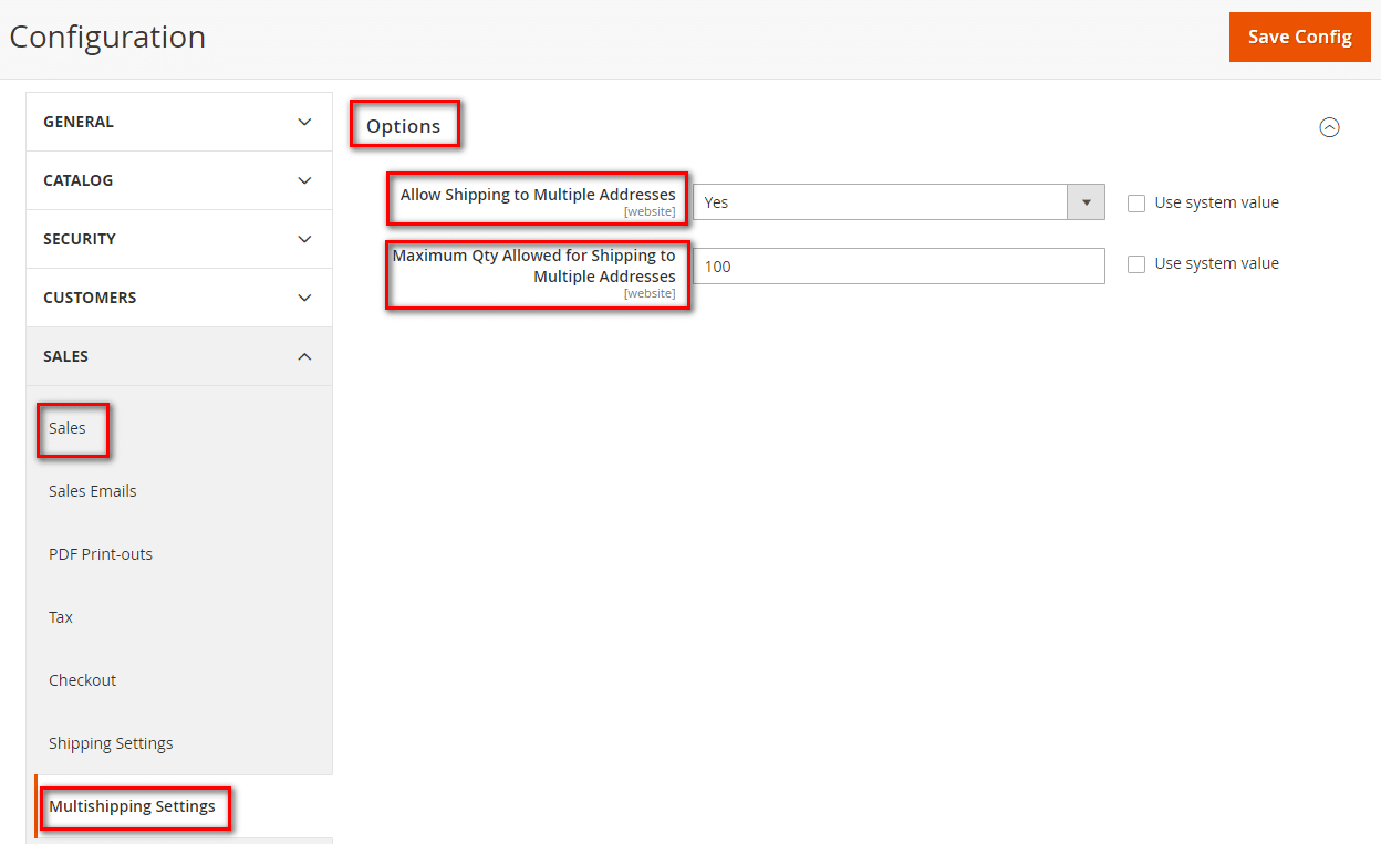 Allow Shipping to Multiple Addresses: Set this field to Yes/No depending on the condition or simply check the box in front of the Use System Value option which is by default set to Yes.