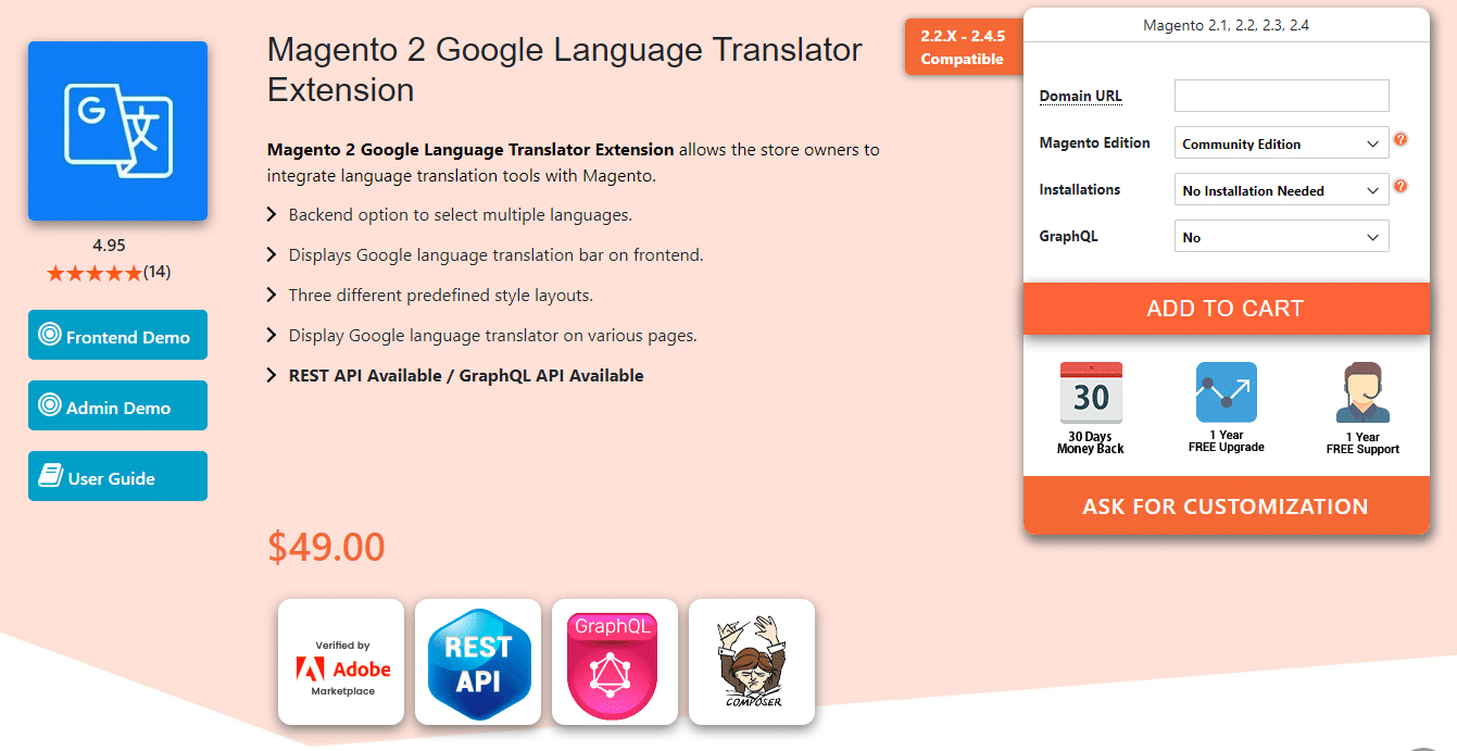 Google Language Translator is a must-have Extension for Magento 2 stores that target customers globally. Allow customers to translate the whole store in just one click using the Google language translator module. As your website speaks the language of customers, it increases the customer experience of your Magento 2 store.