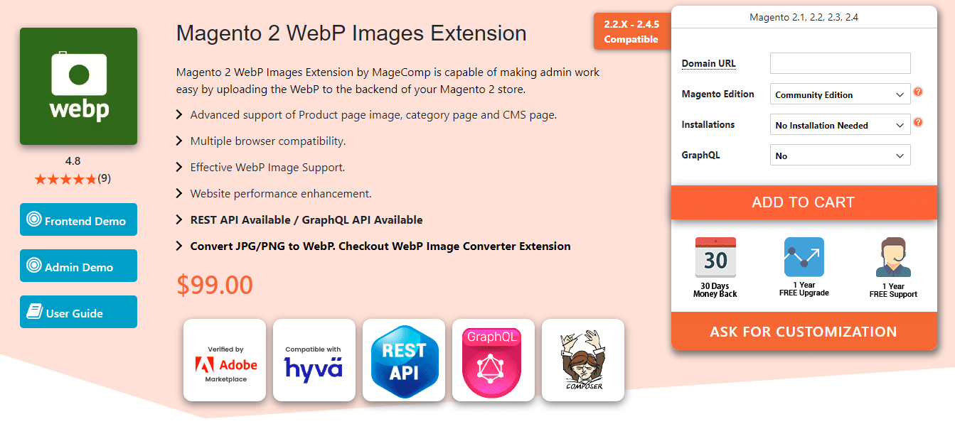 Website loading speed is a key to eCommerce success, and our WebP Images Extension for Magento 2 is helpful if you want to improve website performance. Converting image format to WebP will reduce image size without spoiling image quality. Replace the product, category, and CMS page images with WebP images.