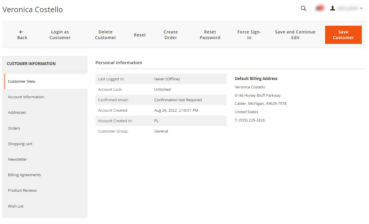 - Account Information – It provides detailed information about the customer where the admin can edit the personal details, date of birth, email, and associate the customer to a website.