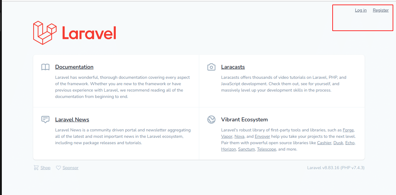 1. A Login and Register links will appear on the right side of the page