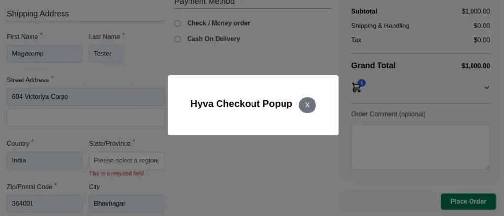 Steps to Open Popup in Hyvä Checkout: