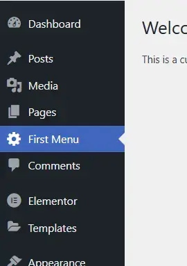 • ‘My First Custom Menu’: The text you see at top of the page when the menu is opened.