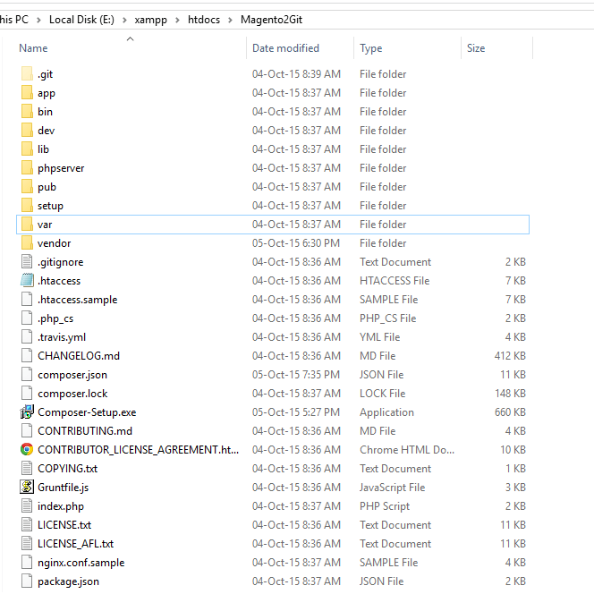 - Go to the path of Magento 2 directory in htdocs of XAMPP