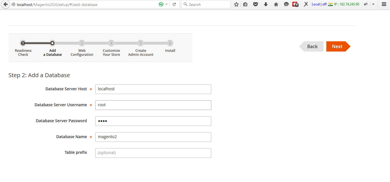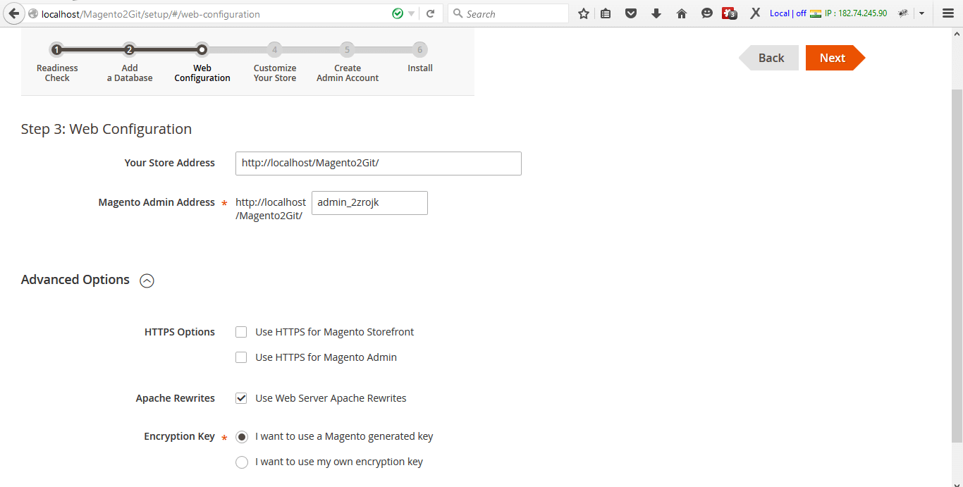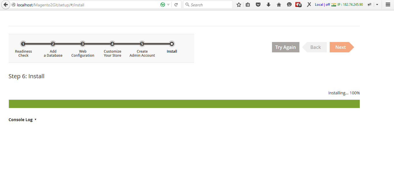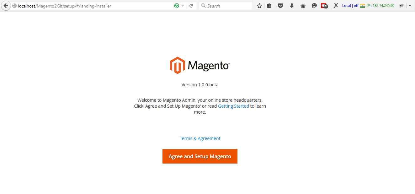 Process may take sometime, be patient. If you interrupt, it can corrupt or crash the Magento. - Head over to browser now and go to the url : https://localhost/magento2