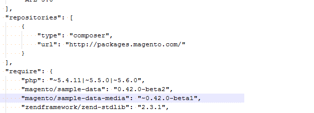 1. Find the composer.json to include the new Sample Data repository. If you don’t want to directly edit this file. You run the following command to complete this action:composer config repositories.magento composer https://packages.magento.com